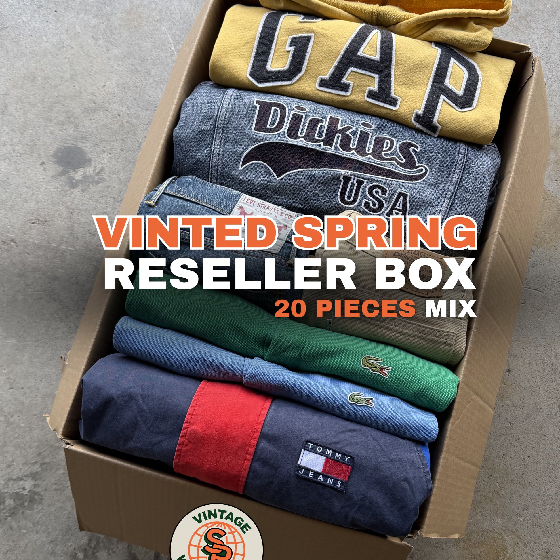 La Vinted Spring Reseller Box es ideal para revendedores que buscan ropa vintage al por mayor, producto de marca listo para vender y un lote optimizado para la reventa en Vinted y plataformas online.